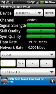 To watch a channel, click on one of the hyperlinks. If the quality is less than desired, adjust the antenna. If the antenna is far away from your computer (like mine), there's another awesome free Android app that can check signal strength: HDHomerun Signal Strength.